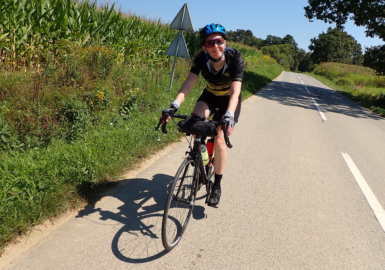 Često ovakve ture prvi dan donesu najviše izazova. Nas dvoje se jesmo dovoljno puta vozili zajedno da se znamo dovoljno. No, ovo je već ozbiljna kilometraža i iako nema mnogo penjanja, bilo je mnogo kratkih i relativno strmih uspona. Nekom s malo kilometara u nogama to su dionice koje im testiraju snagu volje i tjeraju im puls u crveno. Nakon dobrog tempa po ravnici do Koprivnice tamo smo gotovo imali havariju kad je izvjestan netko gotovo gurnuo Vanju s ceste. Kažu, put u pakao popločen je dobrim namjerama. 🤦🏽♂️🤷🏽♂️ Ipak, sve je završilo dobro, nekoliko psovki, nekoliko tihih minuta i pusa za pomirenje. 🙂