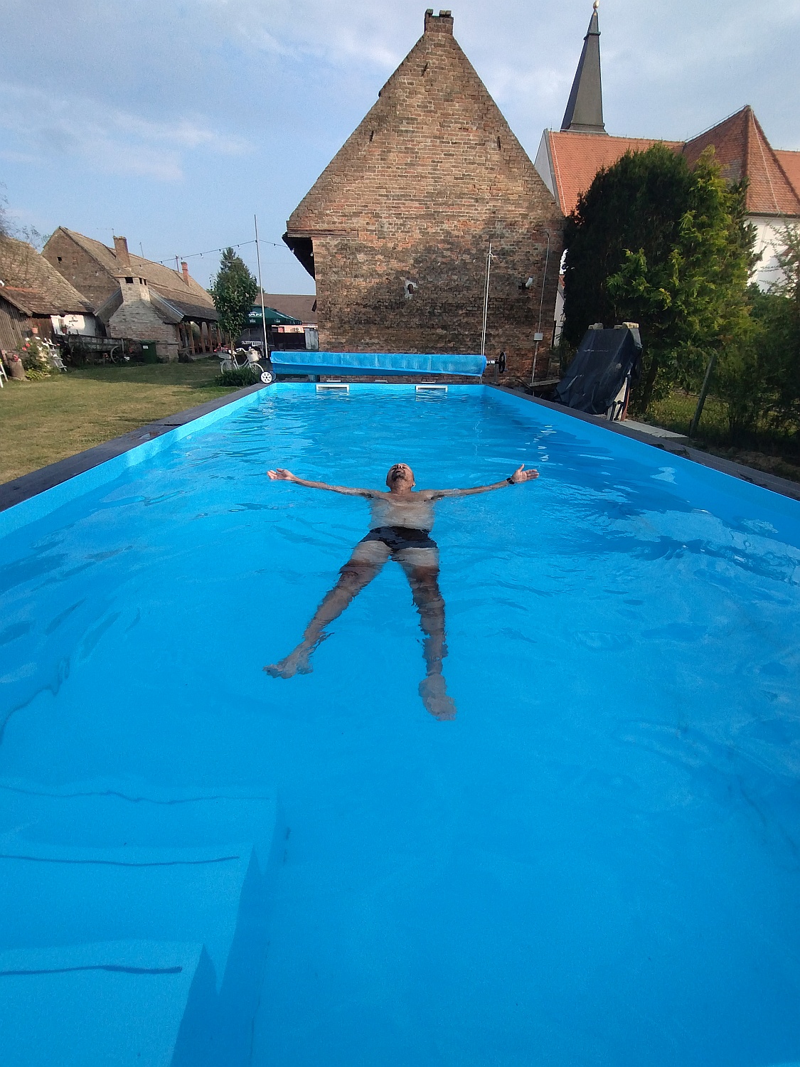 Nažalost, sunce se na kraju dana sakrilo, pirio je vjetar pa voda u bazenu nije bila baš onoliko topla koliko sam se nadao. Ipak, nisam propustio priliku nešto vremena provesti u njemu. Bizovac je malo mjesto i sve što nam je trebalo bilo nam je na pedesetak metara udaljenosti. Slastičarnica sa savim nelošom pizzom te trgovina preko nje.