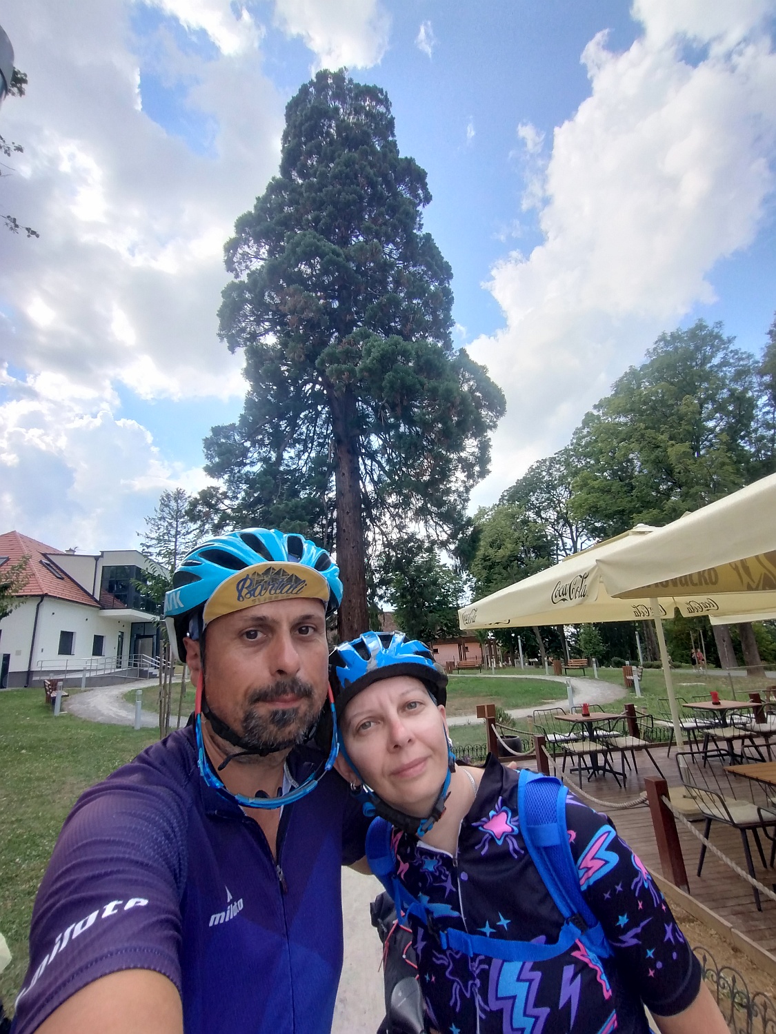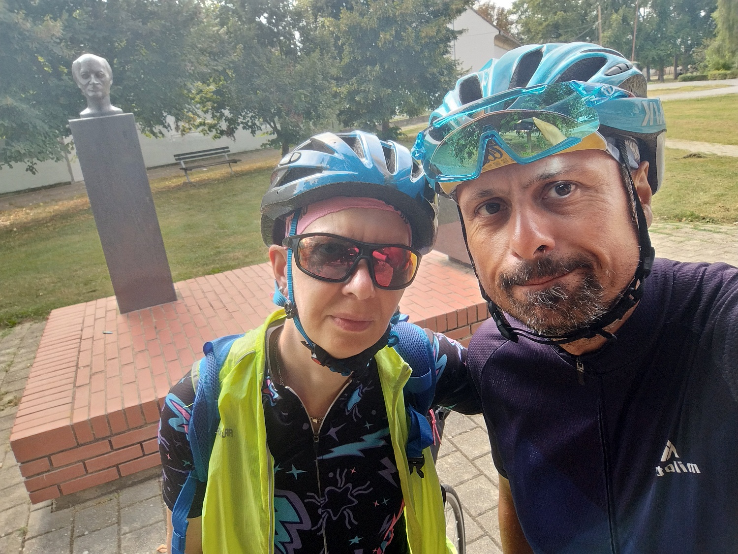 Dobro, stali smo kod biste Vladimira Šovagovića u Ladimirevcima. Mnogo sam o tome kraju saznao iz knjiga Tomislava Šovagovića pa kad smo već prolazili, zašto ne stati. 🙂 Stali smo još i u Valpovu na kavi, u Slatini da pokupimo dijelove za bicikl, popijemo kavu ispod Sekvoje te pojedemo hrenovku na Ini na kojoj sam to isto činio na Fleche vožnji. 🙂 Ja sam čak i osvojio ondašnji najviši vrh.