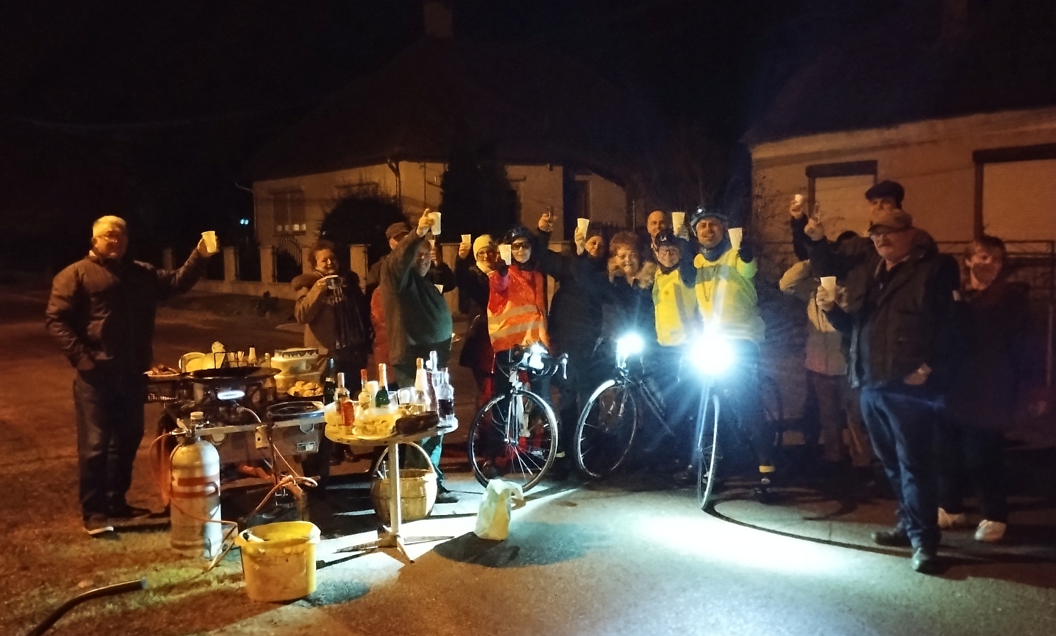Noć je bila topla i ponešto vjetrovita i relativno brzo smo stigli do mađarskog Letenja koje je tek nekoliko kilometara od granice gdje smo na jednome križanju naletjeli na uličnu feštu. Naravno, morali smo se zaustaviti, popiti (samo malo 😁🤫) pjenušca, dame su čak i zaplesale s domaćinima na taktove pjesme “Večeras je naša fešta” koje su nam domaćini odmah izvukli s Youtubea. 🙂 Iako su nas htjeli još zadržati, nudeći nas ićem i pićem, ipak smo produžili dalje.