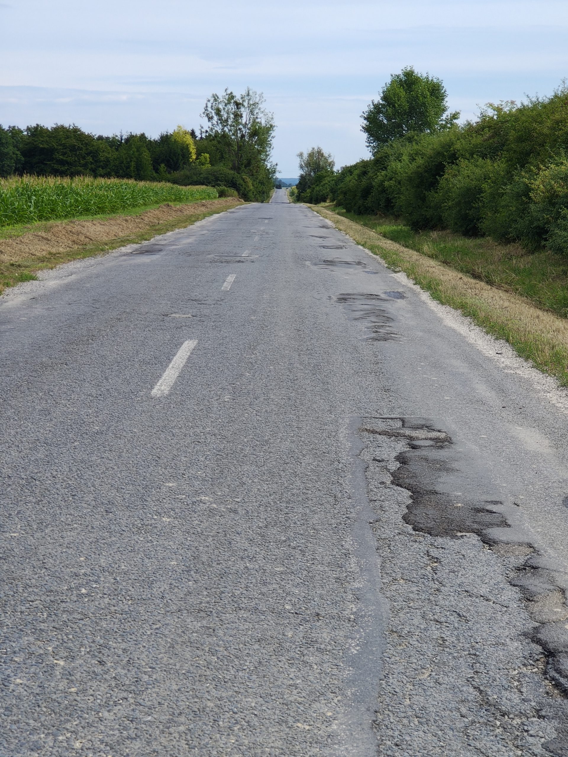 Cesta odjednom postaje mnogo lošija, osjetno ispucana i to me pomalo nervira. Da, znam, vi koji ste vozili po Mađarskoj reći ćete, pa šta, to je tamo norma. No, za divno čudo nakon Barča uglavnom sam vozio po sasvim pristojnim cestama, pa mi je ovo bio lagani šok za već pomalo umorno tijelo i um. Nadao sam se da će pukotine prestati kada prođem kraj cementare, jer ju očito uništavaju vozila koja vapnenac iz kamenoloma s brda kojem sam se divio prevoze do nje.