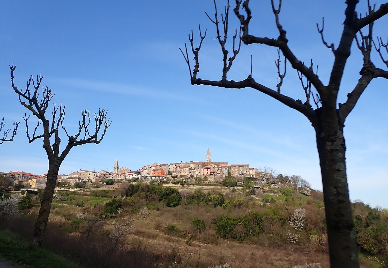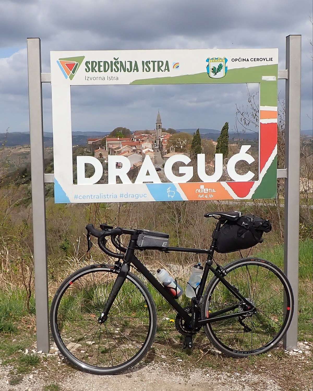 Iz Buzeta sam krenuo prvi od grupe s kojom sam vozio i prvi sam stigao do Draguća. Lijepog mjestašca na brijegu, s kamenom popločenom centralnom ulicom koja vodi do malog središnjeg trga na kojem je fontana, crkva i vidikovac s kojeg pada lijep pogled na dolinu na zapadu. Naši krajevi su veoma lijepi u ovo doba godine, kad prve rane voćke cvatu pa je priroda načičkana bijelim rascvjetanim stablima. Na ulici ljudi sjede ispred svojih kuća, ćakulaju, dok im društvo prave mačke koje se lijeno smucaju okolo. Ovdje su se oblaci ponešto raskinuli pa je odmah bilo toplije pod sunčevim zrakama.