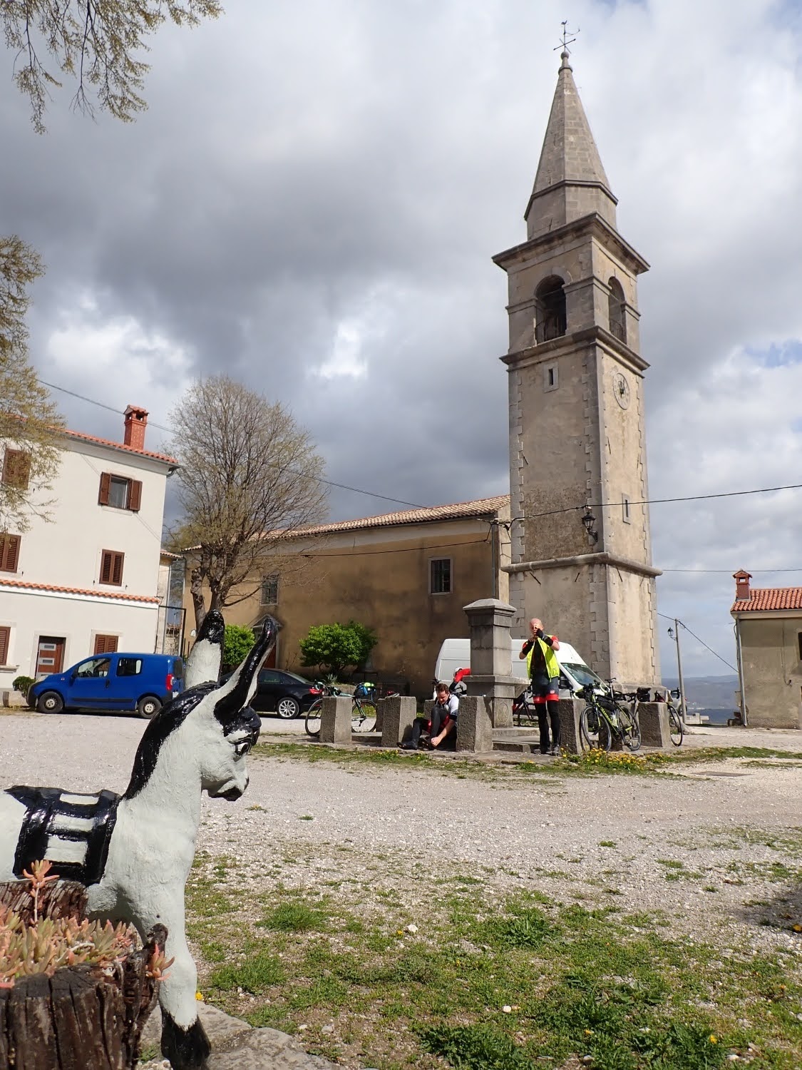 Iako se to ne čini neka udaljenost, trebalo mi je sat i pol do tamo. Unatoč činjenici da je prvih sedam kilometara bio spust i idućih pet je bilo ravno k’o tepsija. No, tih desetak kilometara sjetio me se opet stari prijatelj svih biciklista, vjetar. Junački je puhao dolinom Raše, naravno usporavajući me i sprečavajući me da uživam u pogledu na dolinu i obronke koji ju omeđuju. Prošao sam kraj pojilišta oko kojeg je bilo omaleno stado magaraca. Jedan me onako začuđeno gledao kao, gdje si magarče, uživaš li? 🙂 Pa, da budem iskren u tome trenutku baš i nisam uživao. Ali dobro, sad više nema povratka, Svetvinčenat moram posjetiti, taman da odlučio skratiti brevet s 300 na 200 km. Što mi se vrtjelo po mislima, moram priznati.