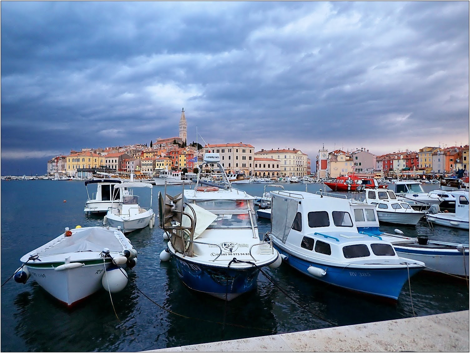Ušavši u Rovinj primijetio sam reklame za MC Donalds. Moram priznati da mi je ideja o hrpi masnih krumpirića s nekakvim hamburgerom onako, ozarila dušu. Već sam ušao na parkiralište, ali kad sam vidio hrpu mladeži kako ulazi taman ispred mene, odlučio sam ipak potražiti neko drugo mjesto jer mi se nije dalo čekati. Vratio sam se nazad na rutu i krenuo prema rivi kad sam naletio na Mlinar! No, prije sam stao i pofotkao poznati Rovinjski kadar s brodovima u prednjem planu, crkvom u zadnjem i dramatičnim nebom da upotpuni sve.