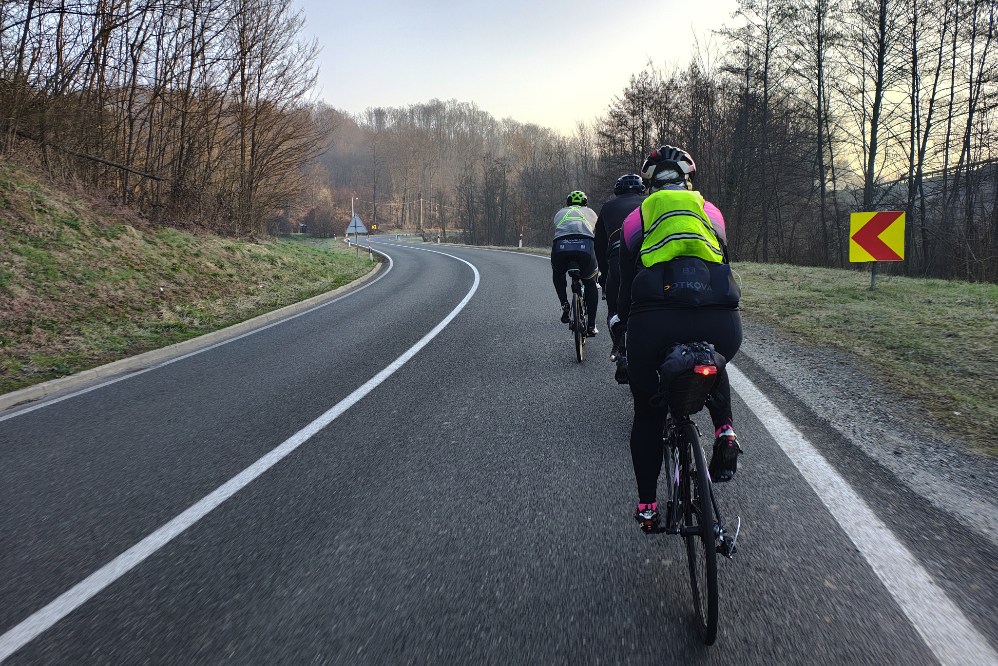 Prolazili su prvi kilometri i postao sam dio veće skupine koju sam odlučio pratiti iako su mi ustvari vozili malo prebrzo. To znači preko 30 km/h po ravnom terenu, a nešto sporije na usponima. Većina njih imala je kronometarske rogove pa im je bilo nešto lakše postizati te brzine a ja sam se želio zagrijati, pa eto, spajao sam (relativno) ugodno s korisnim.