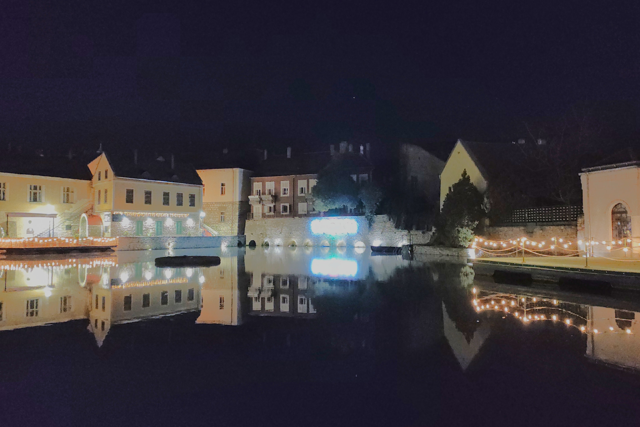 Bilo je malo prije ponoći kada smo stigli do turističkog centra mjesta. Jezera s vodoskokom, na čijem rubu je mlin s velikim drvenim kotačem a iz kojeg istječe potok Tapolca. Svima nam je već hladno, dug dan je iza nas. Kako smo ispred hotela, razgovaramo kako bi bilo lijepo uzeti sobu i uvaliti se u topli krevet. Čini se da na recepciji nema nikoga a na Bookingu ne pronalazimo cijene, pa nastavljamo dalje. Temperatura je ugodnih dva stupnja iznad nule i sve nas već zebu prsti na rukama.
