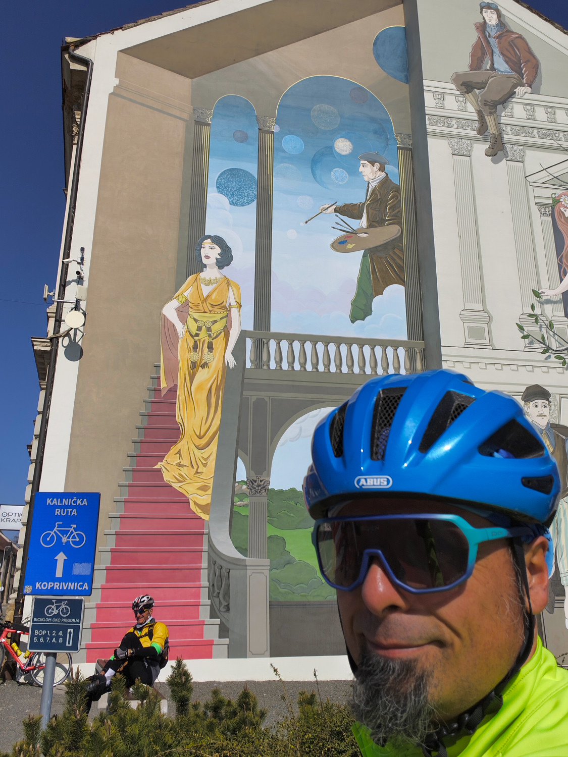 S jutrom se opet diže nekakav vjetar. Ne onoliko jak kao dan prije, ali nešto se osjeća. Nikako da stignemo do te Koprivnice, gdje nam je pretposljedna kontrolna točka. Oko 9 sati konačno smo u centru mjesta, zauzimamo mjesto na terasi među domaćima i pridružujemo se u ispijanju kave. Nažalost, pekara u centru ne radi, plan B je neka druga trgovina. Baš nam se i ne žuri da nastavimo, upijamo donekle tople sunčeve zrake i lijepo nam je.