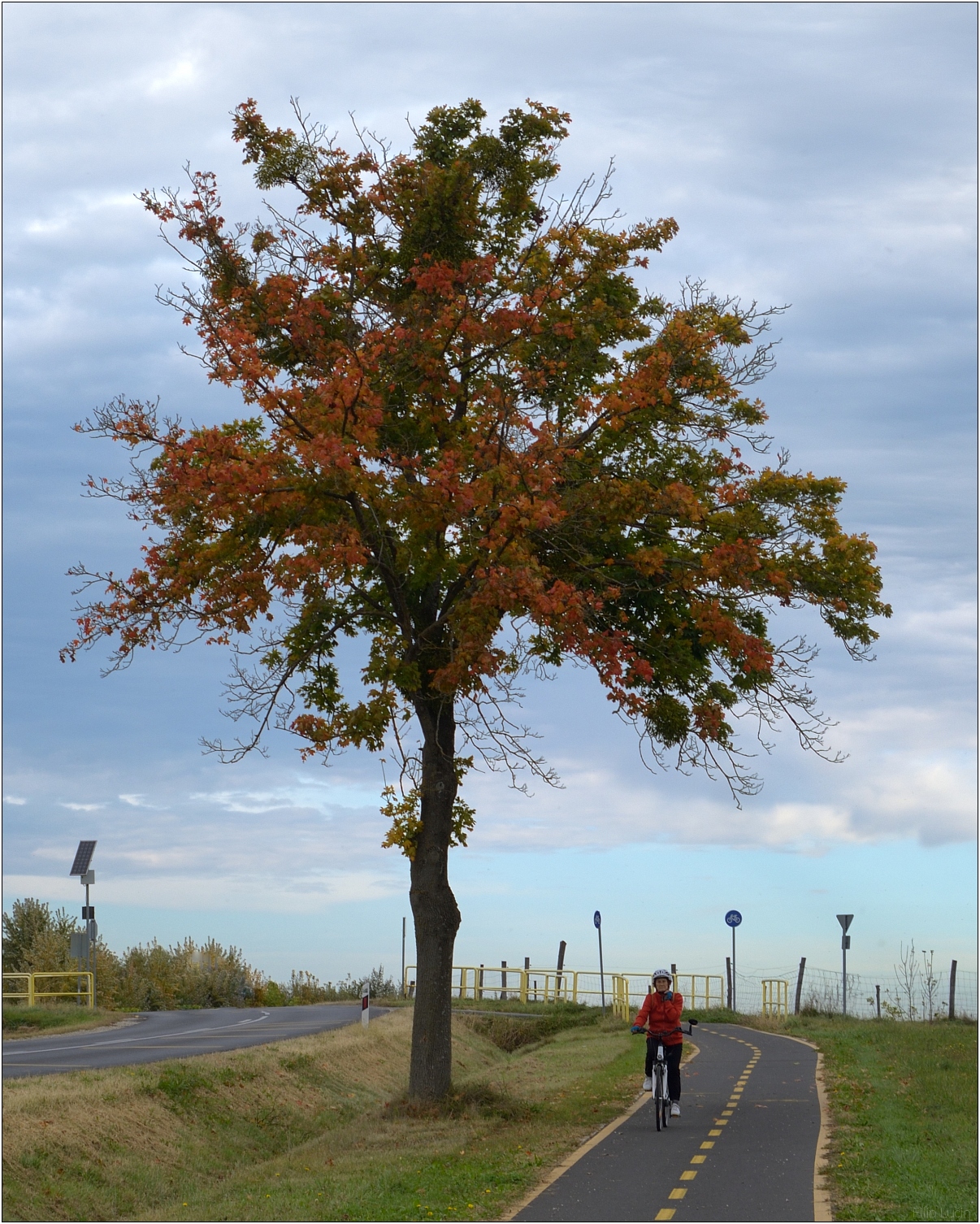 Stablo mi je bilo lijepo, kad sam još spazio i biciklisticu, rekoh savršena prilika za fotku. Gospođa me malo čudno gledala, ali nvz. 😊