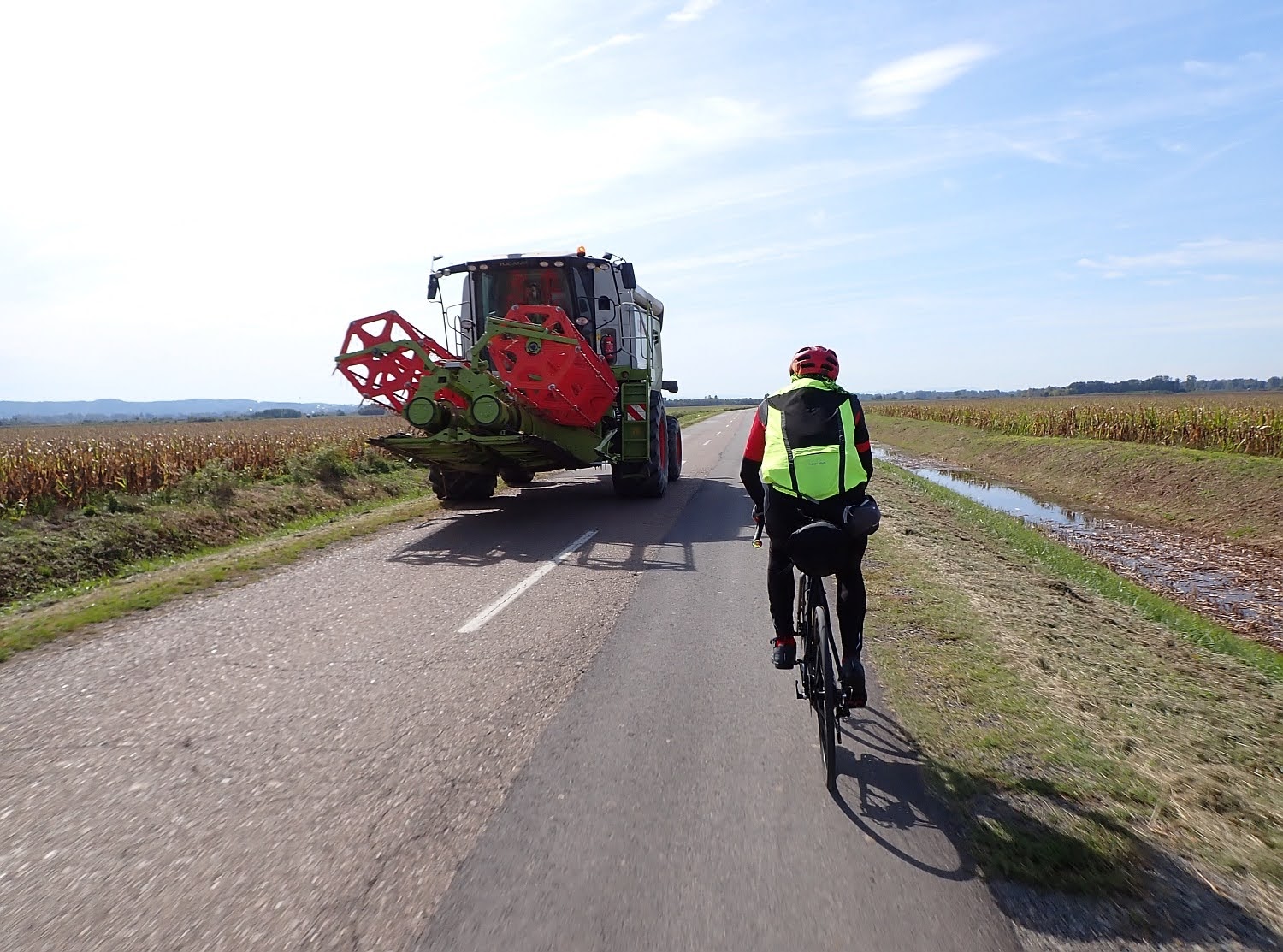 Oni su vozili tempom koji mi je bio malo prejak ali sam ga svejedno pratio jer sam uglavnom vozio u zavjetrini pa me to nije previše umaralo. Kad sam konačno došao na čelo u osjetan južni vjetar to je bilo nadomak prve kontrolne točke na križanju kod mjesta Davor, negdje na 45. kilometru. Do tamo nam je trebalo oko sat i pol što je bio sasvim pristojan tempo.