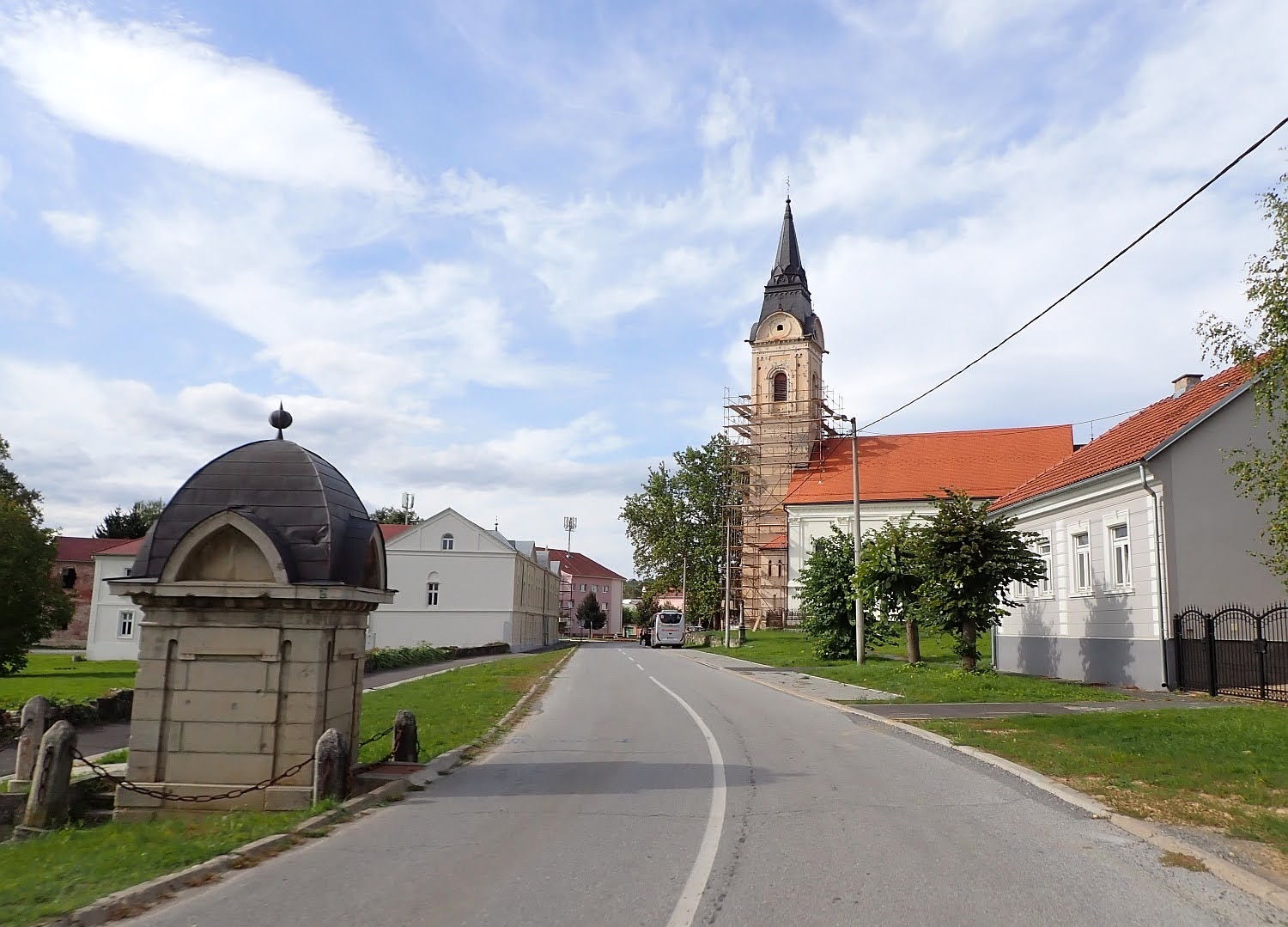 Kroz Kutjevo koje je na dnu spusta samo smo projurili, ponešto smo se vozili i po soku koji jetekao iz traktorskih prikolica punih grožđa koje se vozilo u lokalnu vinariju. Vidjeli smo ih mnogo parkiranih koji su čekali na svoj red da istovare svoj teret, za graševinu vjerojatno. 🙂
