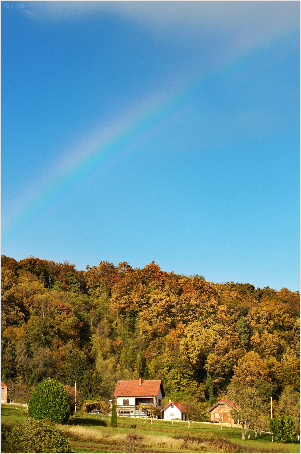 Nakon Orehovca, spustio sam se do Presečnog i nastavio cestom koju sam tako nahvalio u početku, no nisam baš nešto snimio. Nije još bilo dovoljno jesenskih boja, sunce se više skrivalo nego pokazivalo iza oblaka, a za jednu jedinu scenu koju sam usput krajem oka primjetio mi se nije dalo stati. 🤷🏽♂️ Zato sam bio nagrađen nakon što sam prošao Čevo i kad se negdje oko mjesta Filipići (je, stvarno, baš tamo! 😁 ) otvorila scena na fotki ispod.