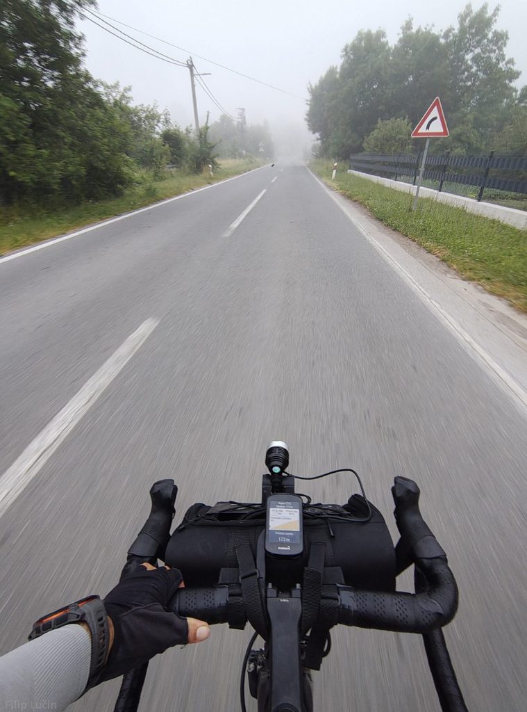 Unatoč ne baš mudrom dremuckanju na biciklu, uspio sam napokon stići do vrha prijevoja. Već se i razdanilo, bilo je oko 5:30. Slijedio je spust u Liku pa onda opet uspon na drugi prijevoj, Vratnik. Počeo sam se spuštati s Kapele i više mi se odjednom nije spavalo! Naime, u kotlini je bila magla i s nekih 40 km/h i nešto više od deset stupnjeva u zraku hladnoća je djelovala kao najjači kofein. 🙂