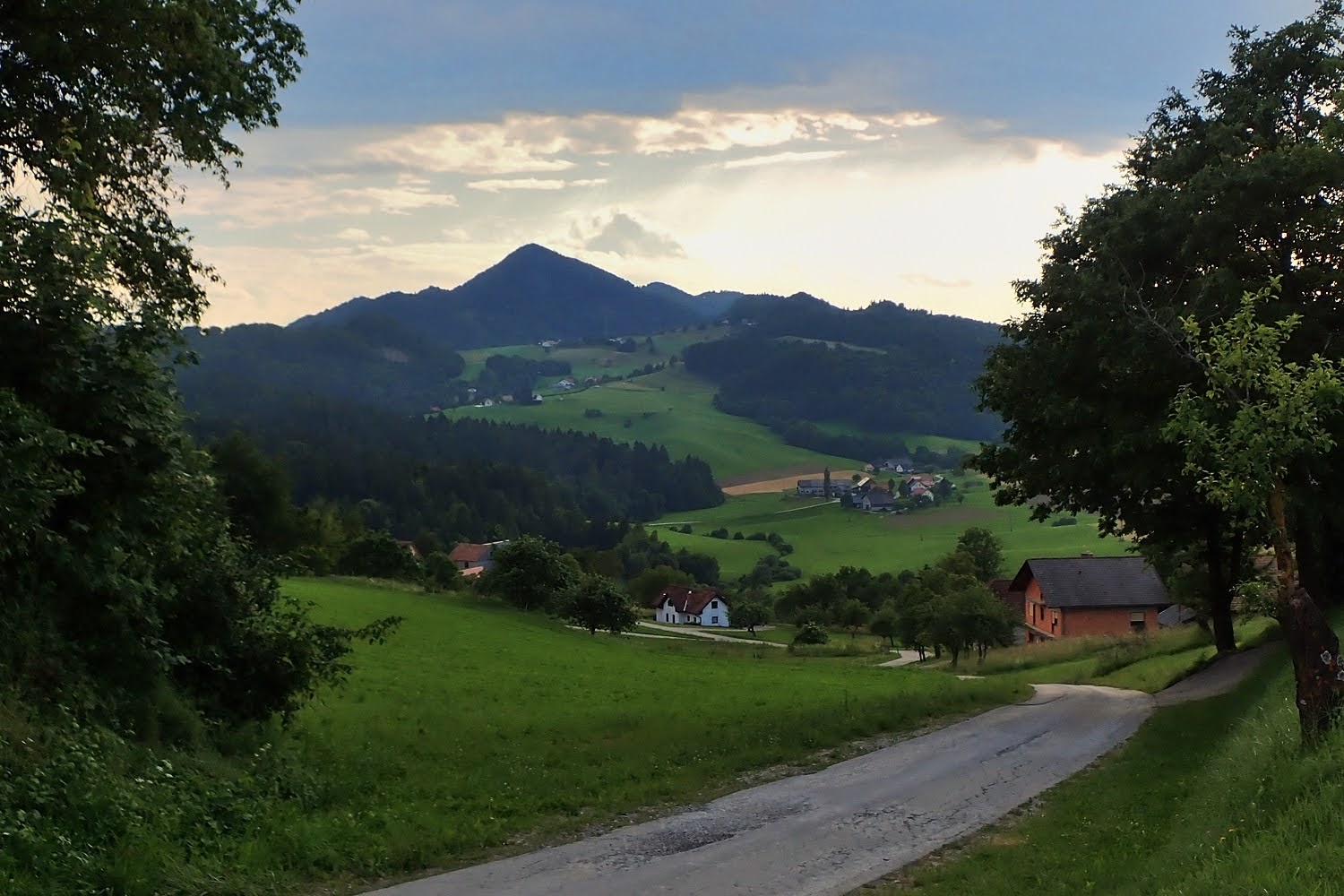 Pogled s prijevoja me pomalo razočarao. Malo nešto se vidjelo na zapad, a sve okolo još vrhova. Iako se u Sevnici hvale da imaju dva vrha visine gotovo 1000 m. Očito sam odabrao krivu cestu. 🤷🏽♂️🙂 Mala benzinska u mjestu do kojeg sam stigao je naravno bila zatvorena, kao i ona u mjestu kasnije. Što je inače pravilo kod susjeda, subota popodne, nedjelja, ništa nećete nigdje kupiti. Osim možda ručka u ugostiteljskim objektima. OK, u većim mjestima će trgovački centri i vjerojatno benzinske raditi dobar dio dana, ako ne i noći, ali Slovenija nema baš mnogo tako velikih gradova, a po njima mi se ionako baš ne vozi biciklom.