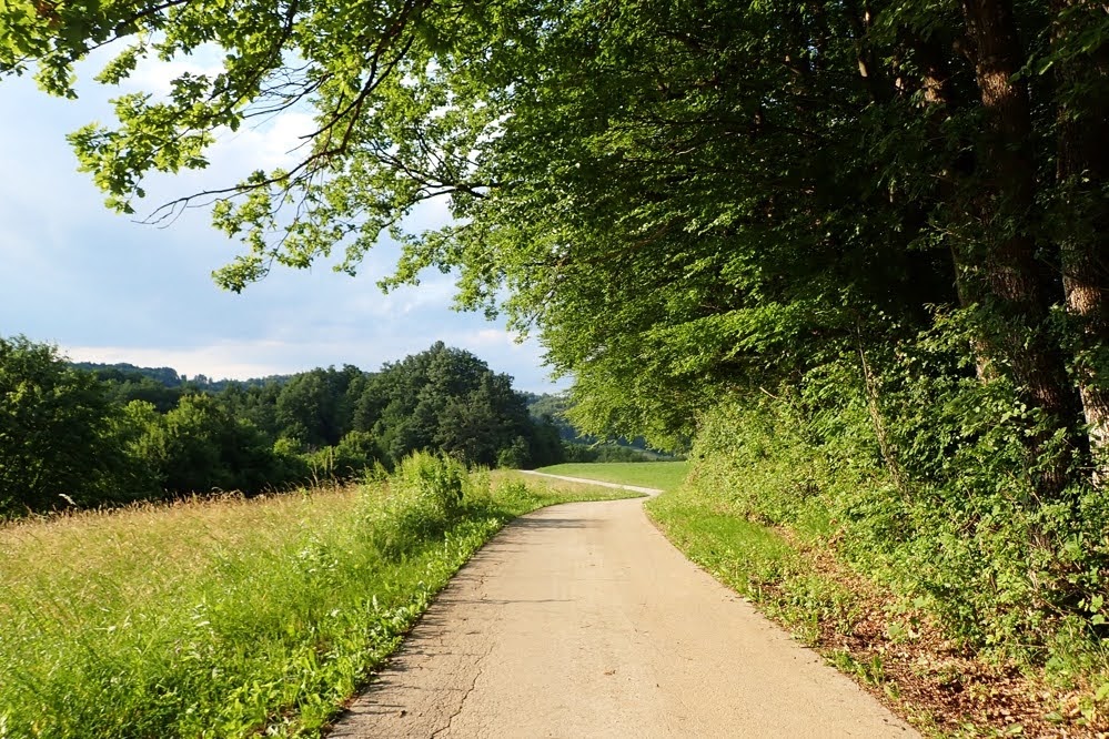 U Krapinskim Toplicama stajem u trgovini, kupujem vodu , dopunjavam bidone i vozim dalje. U Tuheljskim Toplicama nalijećem opet na vlastitu minu. 🙂 Kada mi skretanje kojom me navigacija vodi izgleda čudno, onda se obično potvrdi takav osjećaj. Tako je bilo i sada. Naime, na serpentini na spustu nadomak mjesta, trebao sam skrenuti s glavne na nekakvu mini sporednu koja se odmah digne vjerojatno 15%. Iako sam se isprva dvoumio, ipak sam odlučio probati. Mislio sam, možda uštedim koji kilometar. No, naravno, nisam. Došao sam do kraja ceste na kojem je slijedio strmi spust po nekakvome makadamu. Nisam bio tako avanturistički raspoložen, pa sam se lijepo vratio i napravio tih kilometar ili dva koje sam pokušavao uštediti kreirajući rutu. 🤷🏽♂️